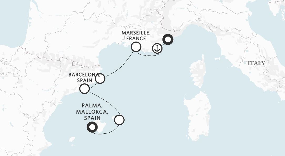 Amangati 的首航航程,沿著地中海最迷人的海岸線展開。從風景如畫的巴利阿里群島啟程,航向高第建築與藝術靈魂交織的巴塞隆納,再抵達帕拉莫斯,深入傳統加泰羅尼亞村莊與美食之都赫羅納。隨後橫越至法國南岸,在卡朗格峽灣的碧藍海水中展開晨間探索,以一杯清新的桃紅葡萄酒為馬賽時光畫下註腳,最後抵達陽光灑落、優雅迷人的聖特羅佩,並於尼斯完成這段蔚藍海岸的奢華弧線。