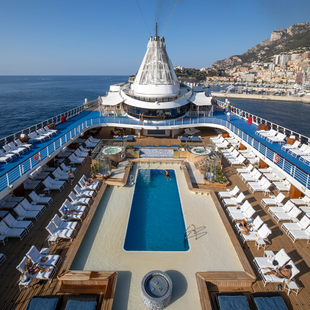 每天早晨睜開眼,落地窗外可能是京都的落櫻、可能是聖托里尼的白牆,也可能是蘇伊士運河的壯闊奇景。大海是您的公路,而這艘頂級郵輪就是您移動的海上宮殿