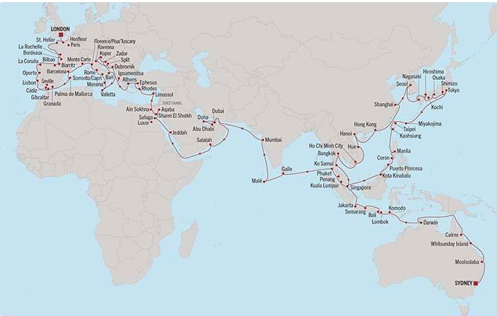 這段「雪梨至倫敦」的傳奇航程,將帶您穿越澳洲的荒野、東南亞的繁華、日韓的古韻,再經由中東的沙漠神話進入地中海的歐陸風情